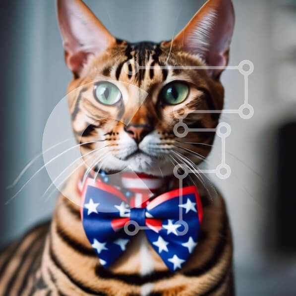 Intra Συλλεκτικό Ξύλινο Παζλ Plywood 4mm – Γάτα της Βεγγάλης με παπιγιόν αμερικανικής σημαίας Σε Ξύλινο Κουτί – Διαστάσεις: 10×10 cm – 25 κομμάτια