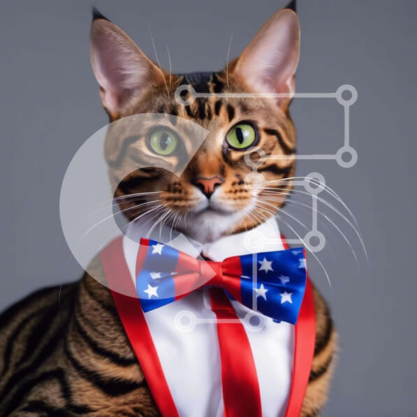 Intra Συλλεκτικό Ξύλινο Παζλ Plywood 4mm – Γάτα της Βεγγάλης που φορά παπιγιόν με αμερικανική σημαία Σε Ξύλινο Κουτί – Διαστάσεις: 10×10 cm – 25 κομμάτια