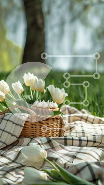 Intra Συλλεκτικό Ξύλινο Παζλ Plywood 4mm – Γαλήνια σκηνή πικνίκ με λευκές τουλίπες και cupcakes Σε Ξύλινο Κουτί – Διαστάσεις Puzzle: 10×10 cm – 25 κομμάτια