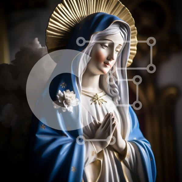 Intra Συλλεκτικό Ξύλινο Παζλ Plywood 4mm – Γαλανόλευκο άγαλμα της Παναγίας στην προσευχή Σε Ξύλινο Κουτί – Διαστάσεις Puzzle: 10×10 cm – 25 κομμάτια