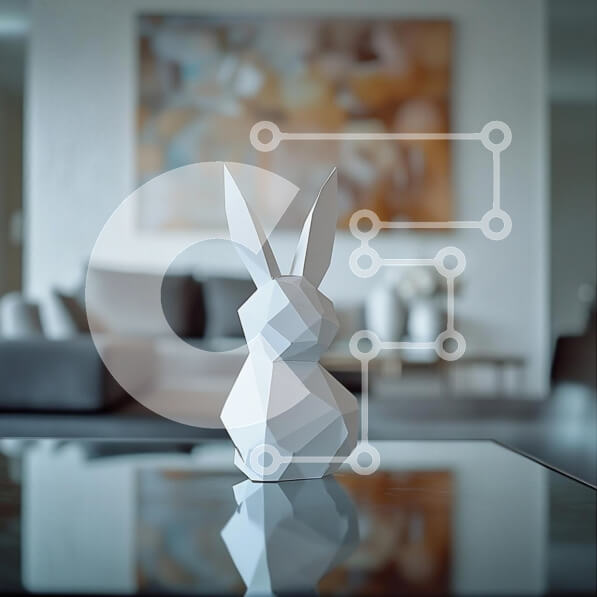 Intra Συλλεκτικό Ξύλινο Παζλ Plywood 4mm – Γεωμετρικό λευκό γλυπτό λαγουδάκι σε σύγχρονο χώρο διαβίωσης Σε Ξύλινο Κουτί – Διαστάσεις Puzzle: 10×10 cm – 25 κομμάτια