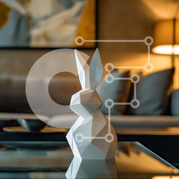 Intra Συλλεκτικό Ξύλινο Παζλ Plywood 4mm – Γεωμετρικό λευκό γλυπτό κουνελιού στο μοντέρνο σαλόνι Σε Ξύλινο Κουτί – Διαστάσεις Puzzle: 10×10 cm – 25 κομμάτια