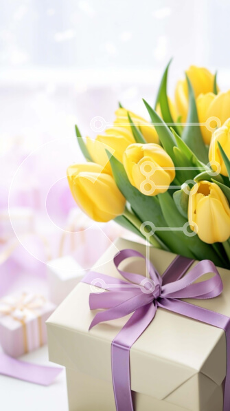 Intra Συλλεκτικό Ξύλινο Παζλ Plywood 4mm – Γιορτή γενεθλίων με κίτρινες τουλίπες και κουτιά δώρων Σε Ξύλινο Κουτί – Διαστάσεις: 10×10 cm – 25 κομμάτια