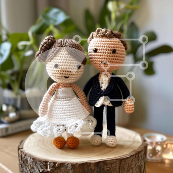 Intra Συλλεκτικό Ξύλινο Παζλ Plywood 4mm – Γιορτή με κροσέ κούκλες γάμου Σε Ξύλινο Κουτί – Διαστάσεις Puzzle: 10×10 cm – 25 κομμάτια