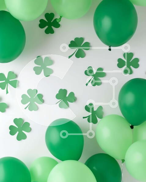 Intra Συλλεκτικό Ξύλινο Παζλ Plywood 4mm – Γιορτή του Αγίου Πατρικίου με πράσινα μπαλόνια και φύλλα τριφυλλιού Σε Ξύλινο Κουτί – Διαστάσεις: 10×10 cm – 25 κομμάτια