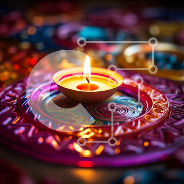Intra Συλλεκτικό Ξύλινο Παζλ Plywood 4mm – Γιορτή Diwali με αναμμένο κερί σε πολύχρωμα χάρτινα πιάτα Σε Ξύλινο Κουτί – Διαστάσεις Puzzle: 10×10 cm – 25 κομμάτια