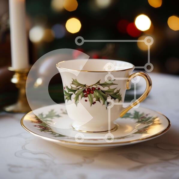Intra Συλλεκτικό Ξύλινο Παζλ Plywood 4mm – Γιορτινό λευκό φλιτζάνι και πιατάκι με φύλλα πουρνάρι σε τραπεζομάντιλο Σε Ξύλινο Κουτί – Διαστάσεις: 10×10 cm – 25 κομμάτια