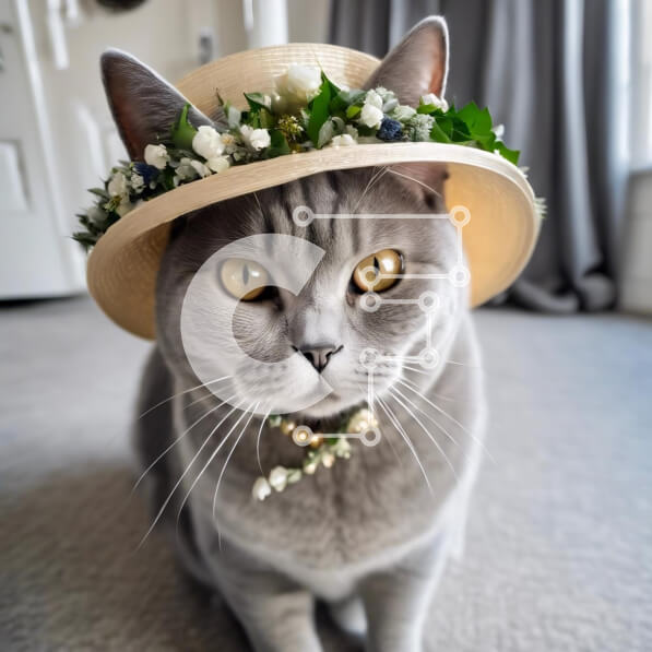 Intra Συλλεκτικό Ξύλινο Παζλ Plywood 4mm – Γκρίζα γάτα που φορά ένα ψάθινο καπέλο με λουλούδια Σε Ξύλινο Κουτί – Διαστάσεις: 10×10 cm – 25 κομμάτια