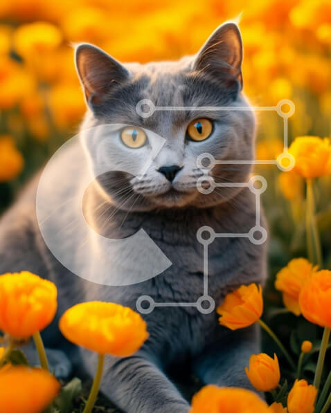 Intra Συλλεκτικό Ξύλινο Παζλ Plywood 4mm – Γκρίζα γάτα στο πεδίο πορτοκαλί λουλουδιών Σε Ξύλινο Κουτί – Διαστάσεις: 10×10 cm – 25 κομμάτια