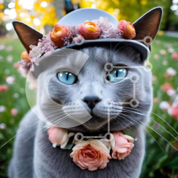 Intra Συλλεκτικό Ξύλινο Παζλ Plywood 4mm – Γκρίζα γάτα που φορά καπέλο λουλουδιών Σε Ξύλινο Κουτί – Διαστάσεις: 10×10 cm – 25 κομμάτια