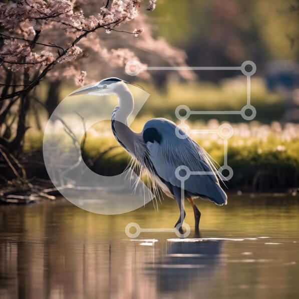 Intra Συλλεκτικό Ξύλινο Παζλ Plywood 4mm – Γκρίζος ερωδιός κοντά σε ανθισμένες κερασιές και νερό Σε Ξύλινο Κουτί – Διαστάσεις: 10×10 cm – 25 κομμάτια