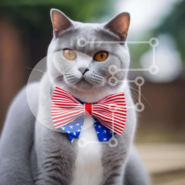 Intra Συλλεκτικό Ξύλινο Παζλ Plywood 4mm – Γκρι γάτα με παπιγιόν με αμερικανική σημαία Σε Ξύλινο Κουτί – Διαστάσεις: 10×10 cm – 25 κομμάτια