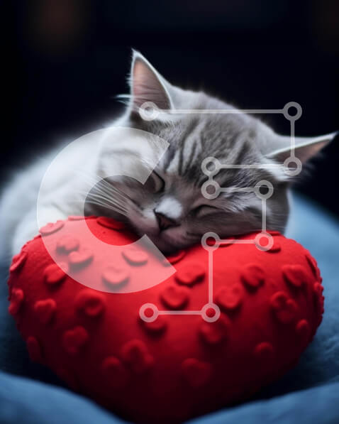 Intra Συλλεκτικό Ξύλινο Παζλ Plywood 4mm – Γκρι γάτα που κοιμάται σε μαξιλάρι σε σχήμα καρδιάς Σε Ξύλινο Κουτί – Διαστάσεις: 10×10 cm – 25 κομμάτια