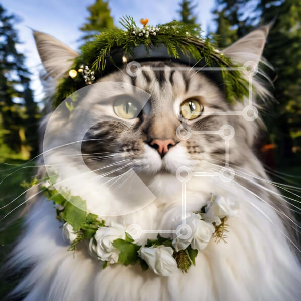 Intra Συλλεκτικό Ξύλινο Παζλ Plywood 4mm – Γκρι και άσπρη γάτα με ανθοσύνθεση στο κεφάλι Σε Ξύλινο Κουτί – Διαστάσεις: 10×10 cm – 25 κομμάτια