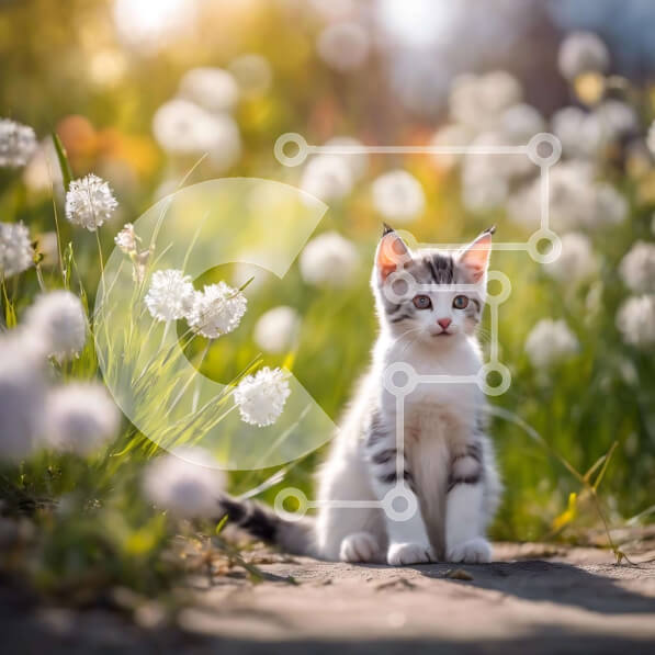 Intra Συλλεκτικό Ξύλινο Παζλ Plywood 4mm – Γκρι και άσπρη γάτα με λευκά λουλούδια Σε Ξύλινο Κουτί – Διαστάσεις: 10×10 cm – 25 κομμάτια