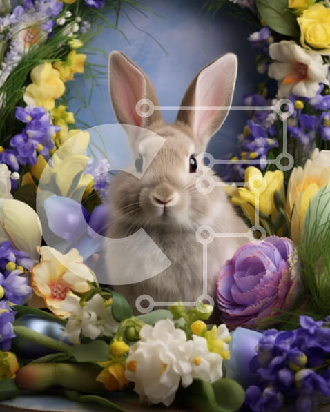 Intra Συλλεκτικό Ξύλινο Παζλ Plywood 4mm – Γκρι λαγουδάκι που περιβάλλεται από πολύχρωμα λουλούδια και αυγά Σε Ξύλινο Κουτί – Διαστάσεις: 10×10 cm – 25 κομμάτια