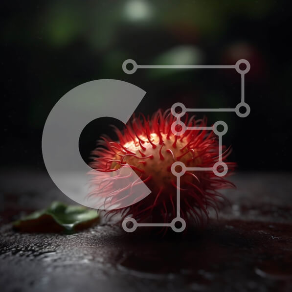 Intra Συλλεκτικό Ξύλινο Παζλ Plywood 4mm – Γκρο πλαν φωτογραφία του κόκκινου καρπού Rambutan σε σκούρο ξύλο Σε Ξύλινο Κουτί – Διαστάσεις: 10×10 cm – 25 κομμάτια