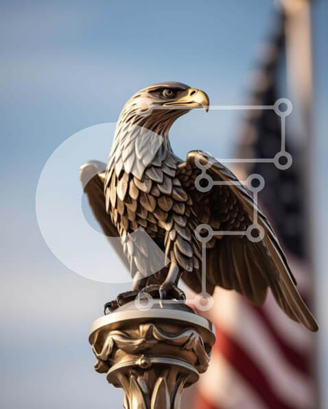 Intra Συλλεκτικό Ξύλινο Παζλ Plywood 4mm – Γλυπτό αετού με φόντο την αμερικανική σημαία Σε Ξύλινο Κουτί – Διαστάσεις Puzzle: 10×10 cm – 25 κομμάτια