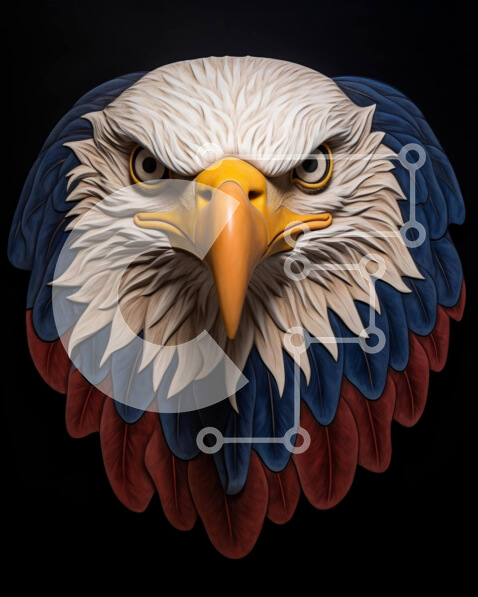 Intra Συλλεκτικό Ξύλινο Παζλ Plywood 4mm – Γλυπτό του κεφαλιού του αετού με κόκκινα, λευκά και μπλε φτερά Σε Ξύλινο Κουτί – Διαστάσεις Puzzle: 10×10 cm – 25 κομμάτια