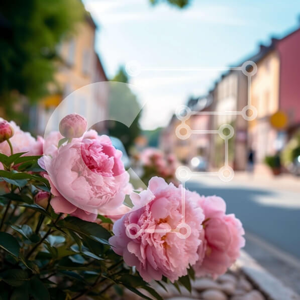 Intra Συλλεκτικό Ξύλινο Παζλ Plywood 4mm – Γοητευτικός δρόμος σε μια μικρή πόλη με πολύχρωμα κτίρια και ροζ λουλούδια Σε Ξύλινο Κουτί – Διαστάσεις Puzzle: 10×10 cm – 25 κομμάτια