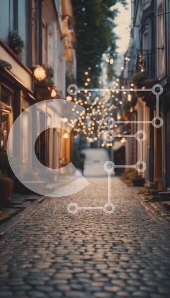 Intra Συλλεκτικό Ξύλινο Παζλ Plywood 4mm – Γοητευτική λιθόστρωτη οδός με φώτα χορδών στο σούρουπο Σε Ξύλινο Κουτί – Διαστάσεις Puzzle: 10×10 cm – 25 κομμάτια