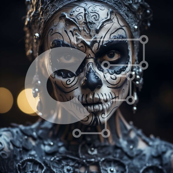 Intra Συλλεκτικό Ξύλινο Παζλ Plywood 4mm – Γοτθικό μακιγιάζ κρανίου με μαύρο φόρεμα και ασημένια κοσμήματα Σε Ξύλινο Κουτί – Διαστάσεις: 10×10 cm – 25 κομμάτια
