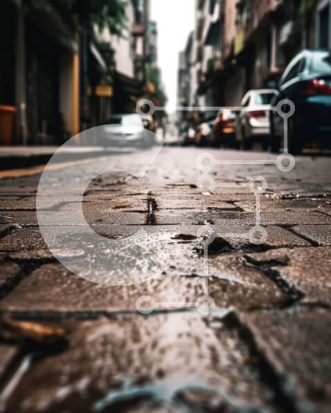 Intra Συλλεκτικό Ξύλινο Παζλ Plywood 4mm – Γραφική οδός της πόλης με παρκαρισμένα αυτοκίνητα και λακκούβα νερού Σε Ξύλινο Κουτί – Διαστάσεις Puzzle: 10×10 cm – 25 κομμάτια