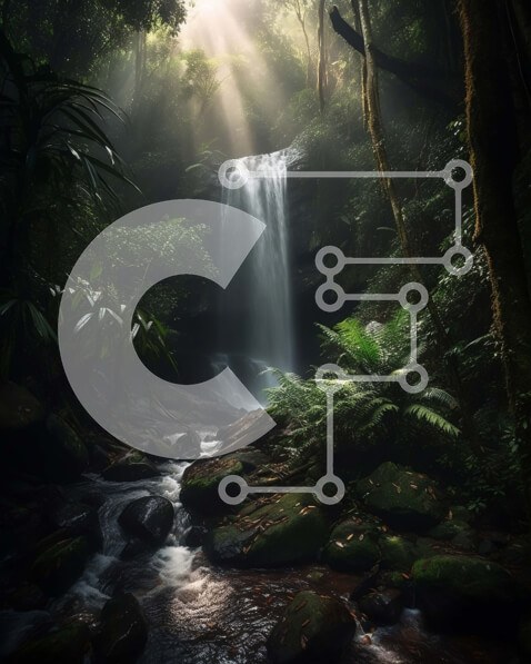 Intra Συλλεκτικό Ξύλινο Παζλ Plywood 4mm – Γραφικός καταρράκτης σε μια πυκνή ζούγκλα με το φως του ήλιου να λάμπει μέσα από τα δέντρα Σε Ξύλινο Κουτί – Διαστάσεις: 10×10 cm – 25 κομμάτια