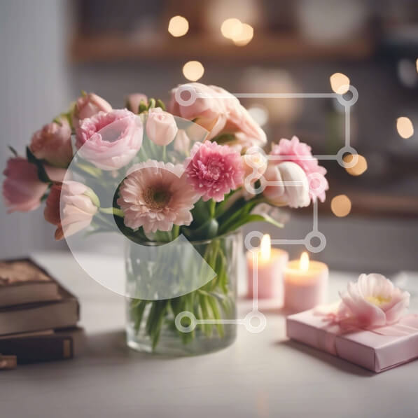 Intra Συλλεκτικό Ξύλινο Παζλ Plywood 4mm – Γυάλινο βάζο με ροζ λουλούδια και κεριά στο τραπέζι Σε Ξύλινο Κουτί – Διαστάσεις Puzzle: 10×10 cm – 25 κομμάτια