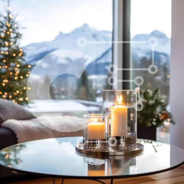 Intra Συλλεκτικό Ξύλινο Παζλ Plywood 4mm – Γυάλινο τραπέζι με κεριά και θέα στο βουνό Σε Ξύλινο Κουτί – Διαστάσεις: 10×10 cm – 25 κομμάτια