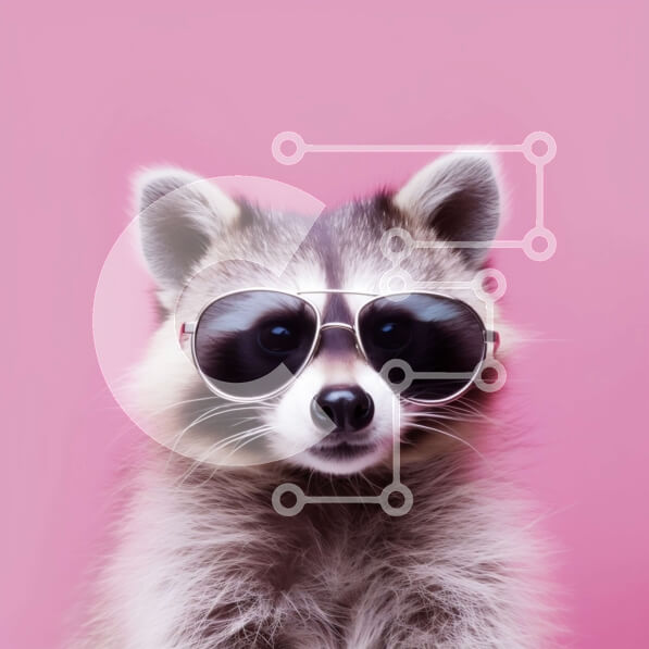 Intra Συλλεκτικό Ξύλινο Παζλ Plywood 4mm – Γυαλιά ηλίου που φοράνε ρακούν σε διασκεδαστικό ροζ φόντο Σε Ξύλινο Κουτί – Διαστάσεις: 10×10 cm – 25 κομμάτια