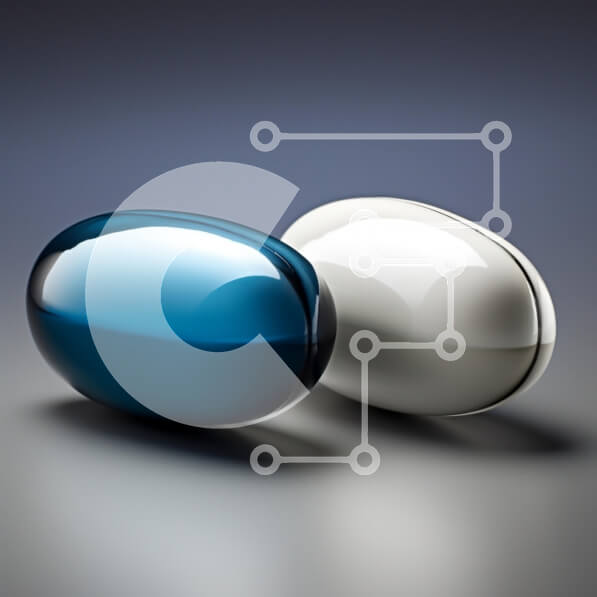 Intra Συλλεκτικό Ξύλινο Παζλ Plywood 4mm – Γυαλιστερές μπλε και λευκές κάψουλες σε γκρι επιφάνεια Σε Ξύλινο Κουτί – Διαστάσεις: 10×10 cm – 25 κομμάτια