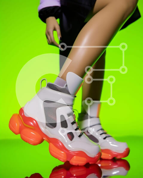 Intra Συλλεκτικό Ξύλινο Παζλ Plywood 4mm – Γυναίκα με λευκά αθλητικά παπούτσια με πορτοκαλί τόνους Σε Ξύλινο Κουτί – Διαστάσεις Puzzle: 10×10 cm – 25 κομμάτια