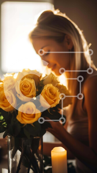 Intra Συλλεκτικό Ξύλινο Παζλ Plywood 4mm – Γυναίκα με κίτρινα τριαντάφυλλα και κερί Σε Ξύλινο Κουτί – Διαστάσεις Puzzle: 10×10 cm – 25 κομμάτια