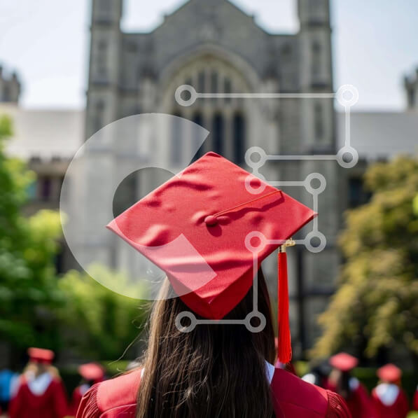 Intra Συλλεκτικό Ξύλινο Παζλ Plywood 4mm – Γυναίκα με κόκκινο σκουφάκι αποφοίτησης σε εντυπωσιακό κτίριο Σε Ξύλινο Κουτί – Διαστάσεις Puzzle: 10×10 cm – 25 κομμάτια