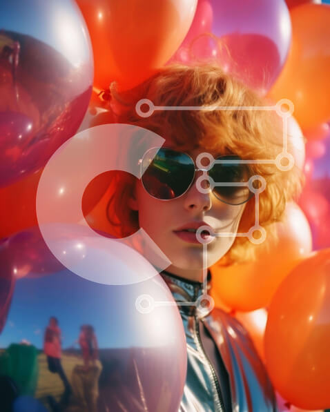 Intra Συλλεκτικό Ξύλινο Παζλ Plywood 4mm – Γυναίκα με κόκκινα μαλλιά και πολύχρωμα μπαλόνια Σε Ξύλινο Κουτί – Διαστάσεις Puzzle: 10×10 cm – 25 κομμάτια