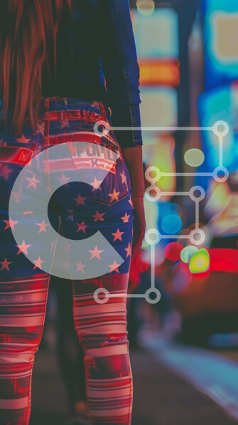 Intra Συλλεκτικό Ξύλινο Παζλ Plywood 4mm – Γυναίκα με παντελόνι με θέμα την αμερικανική σημαία στο City Street τη νύχτα Σε Ξύλινο Κουτί – Διαστάσεις Puzzle: 10×10 cm – 25 κομμάτια