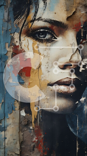 Intra Συλλεκτικό Ξύλινο Παζλ Plywood 4mm – Γυναίκα με βαμμένο πρόσωπο σε κόκκινο φόρεμα στον τοίχο που ξεφλουδίζει Σε Ξύλινο Κουτί – Διαστάσεις Puzzle: 10×10 cm – 25 κομμάτια