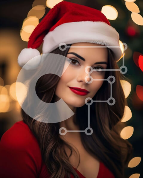 Intra Συλλεκτικό Ξύλινο Παζλ Plywood 4mm – Γυναίκα με καπέλο Άγιου Βασίλη που ποζάρει μπροστά από το χριστουγεννιάτικο δέντρο Σε Ξύλινο Κουτί – Διαστάσεις: 10×10 cm – 25 κομμάτια
