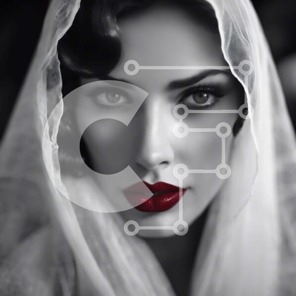 Intra Συλλεκτικό Ξύλινο Παζλ Plywood 4mm – Γυναίκα με ασπρόμαυρη εικόνα με περίτεχνο πέπλο και κόκκινα χείλη Σε Ξύλινο Κουτί – Διαστάσεις: 10×10 cm – 25 κομμάτια