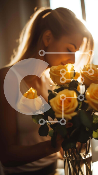 Intra Συλλεκτικό Ξύλινο Παζλ Plywood 4mm – Γυναίκα που κρατά φρέσκα κίτρινα τριαντάφυλλα Σε Ξύλινο Κουτί – Διαστάσεις Puzzle: 10×10 cm – 25 κομμάτια