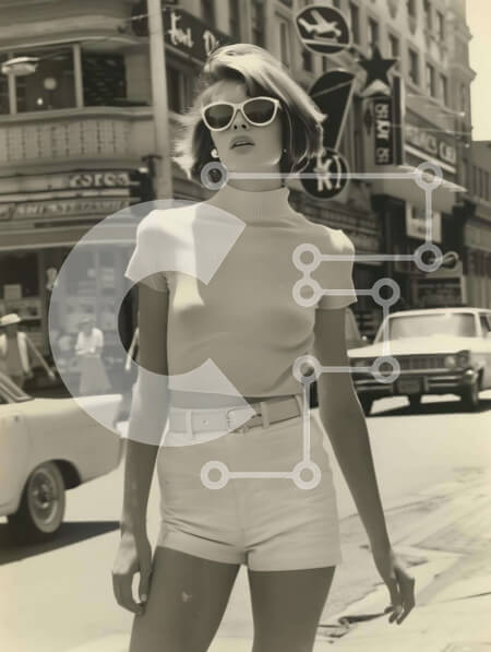 Intra Συλλεκτικό Ξύλινο Παζλ Plywood 4mm – Γυναίκα που περπατά με λευκό σορτς με αυτοκίνητα στο φόντο Σε Ξύλινο Κουτί – Διαστάσεις Puzzle: 10×10 cm – 25 κομμάτια