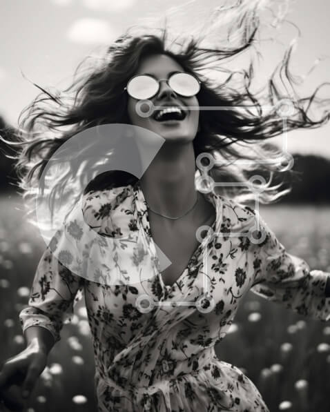 Intra Συλλεκτικό Ξύλινο Παζλ Plywood 4mm – Γυναίκα που τρέχει μέσα από το ανοιχτό πεδίο με τα γυαλιά ηλίου Σε Ξύλινο Κουτί – Διαστάσεις Puzzle: 10×10 cm – 25 κομμάτια