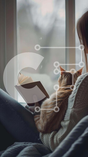 Intra Συλλεκτικό Ξύλινο Παζλ Plywood 4mm – Γυναίκα που διαβάζει με τη γάτα στον καναπέ κοντά στα παράθυρα Σε Ξύλινο Κουτί – Διαστάσεις Puzzle: 10×10 cm – 25 κομμάτια