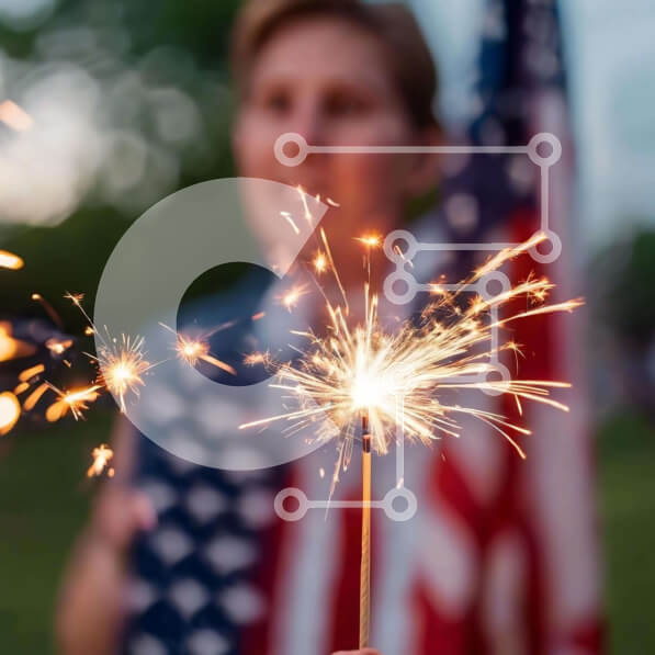 Intra Συλλεκτικό Ξύλινο Παζλ Plywood 4mm – Γυναίκα που γιορτάζει την 4η Ιουλίου με βεγγαλικά και πυροτεχνήματα αμερικανικής σημαίας Σε Ξύλινο Κουτί – Διαστάσεις: 10×10 cm – 25 κομμάτια