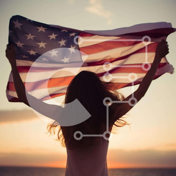 Intra Συλλεκτικό Ξύλινο Παζλ Plywood 4mm – Γυναίκα που γιορτάζει την 4η Ιουλίου με την αμερικανική σημαία στο ηλιοβασίλεμα Σε Ξύλινο Κουτί – Διαστάσεις: 10×10 cm – 25 κομμάτια