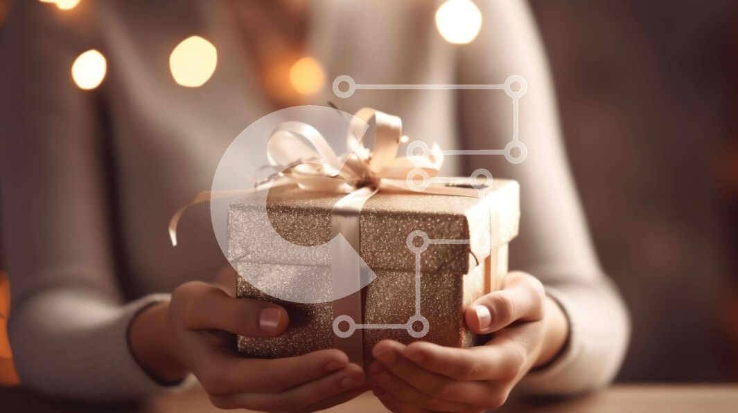 Intra Συλλεκτικό Ξύλινο Παζλ Plywood 4mm – Γυναίκα που κρατά ένα κουτί δώρου με πολύχρωμα φώτα Σε Ξύλινο Κουτί – Διαστάσεις Puzzle: 10×10 cm – 25 κομμάτια