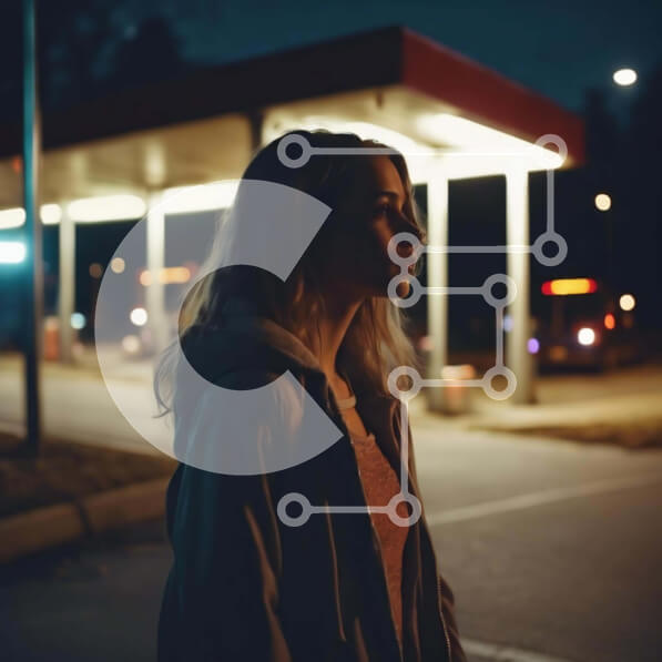 Intra Συλλεκτικό Ξύλινο Παζλ Plywood 4mm – Γυναίκα που στέκεται τη νύχτα στο άδειο βενζινάδικο Σε Ξύλινο Κουτί – Διαστάσεις Puzzle: 10×10 cm – 25 κομμάτια
