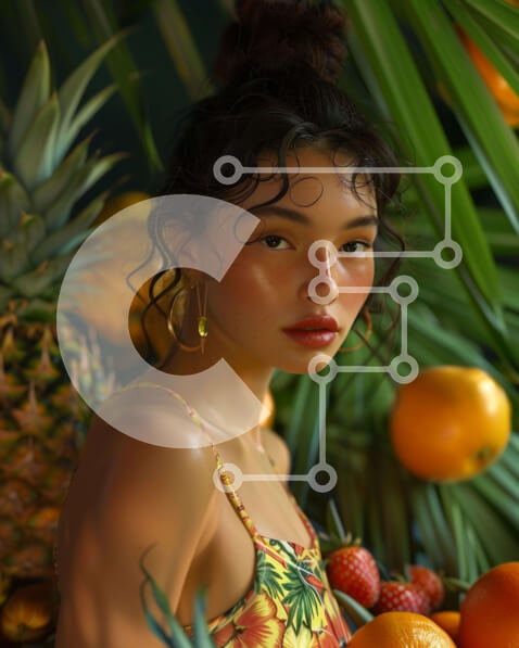Intra Συλλεκτικό Ξύλινο Παζλ Plywood 4mm – Γυναίκα που ποζάρει με τροπικά φρούτα Σε Ξύλινο Κουτί – Διαστάσεις: 10×10 cm – 25 κομμάτια