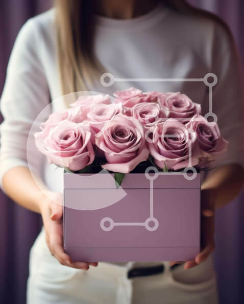 Intra Συλλεκτικό Ξύλινο Παζλ Plywood 4mm – Γυναίκα που κρατά ένα κουτί με ροζ τριαντάφυλλα Σε Ξύλινο Κουτί – Διαστάσεις Puzzle: 10×10 cm – 25 κομμάτια